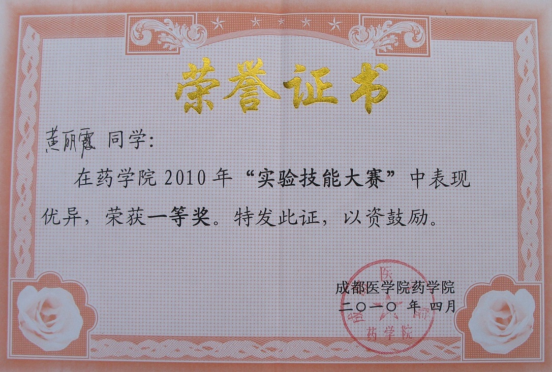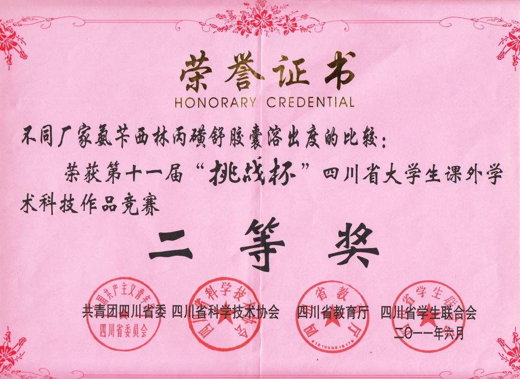 获奖证书: