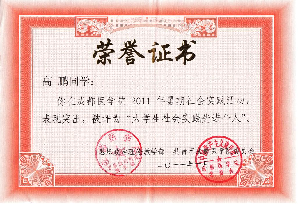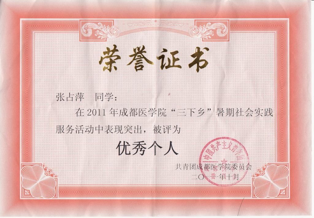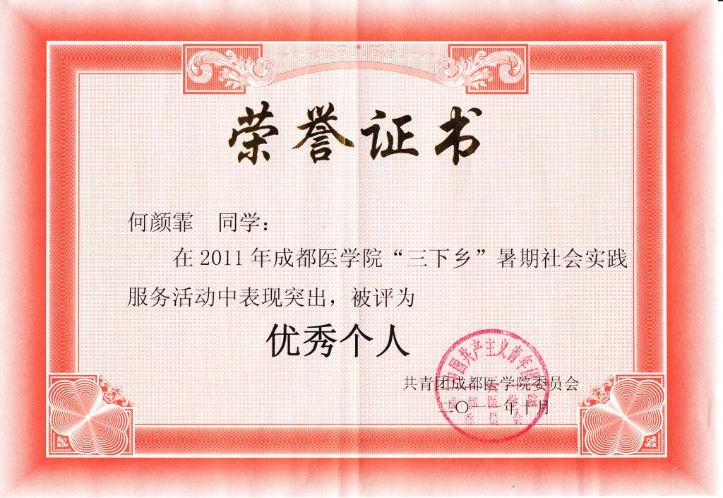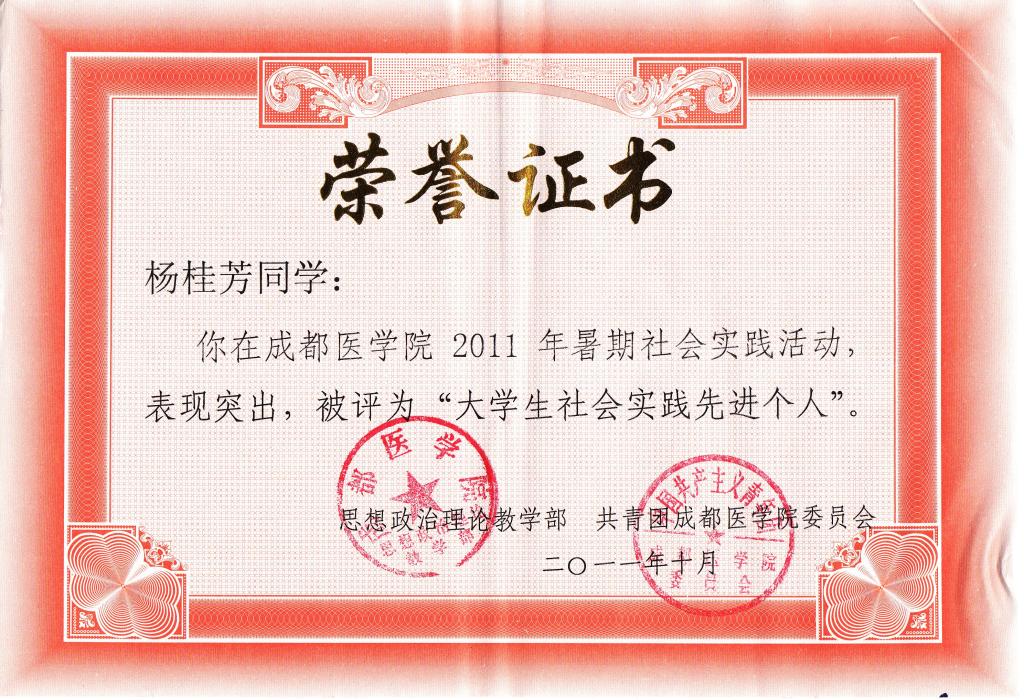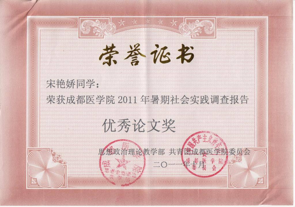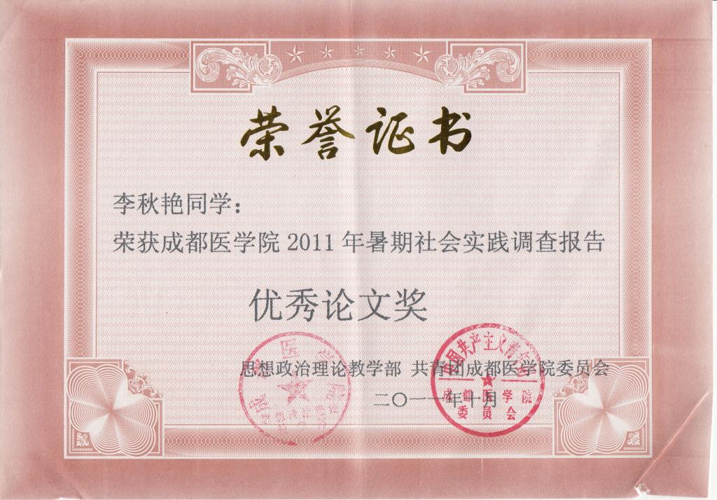 获奖证书: