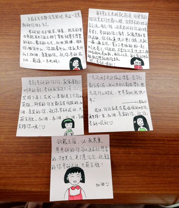 2020年全国硕士研究生招生考试将于本周末举行。在考试来临之际,12月16日以来,皇冠登录入口welcome学生第二党支部组织了一场“为考研学长学姐送祝福”的活动,将“不忘初心、牢记使命”主题教育真正落到实处,既是发挥党员的先锋模范作用,同时也是一次暖心之举,让所有考生感受到来自党组织的温暖。