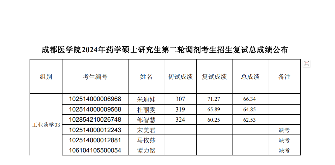 皇冠登录入口welcome2024年药学硕士第二轮调剂复试名单