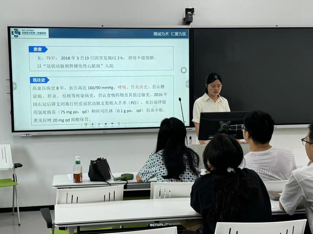 交流会上,李静老师通过分享典型临床教学案例“ACS个体化治疗”及“SJS/TEN患者治疗案例”,从安全合理用药方面一步步剖析了基因多态性对药物作用的影响,强调了个体化治疗的重要性及药物相互作用的利弊,并以此为例将临床医学和药理学的知识进行了融会贯通。案例教学分享后,参会的老师和同学就临床合理用药问题及案例教学的设计与李静老师进行了交流讨论。